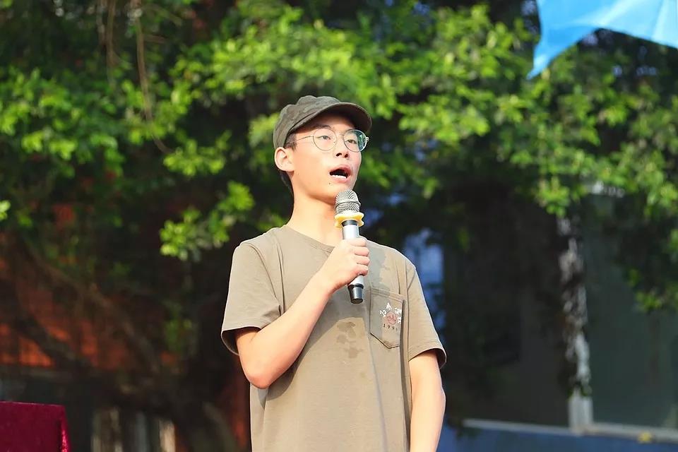 王校长用铿锵有力的声音宣布:重庆市为明学校第十三届初高中新生入学规范教育开营仪式正式开始。