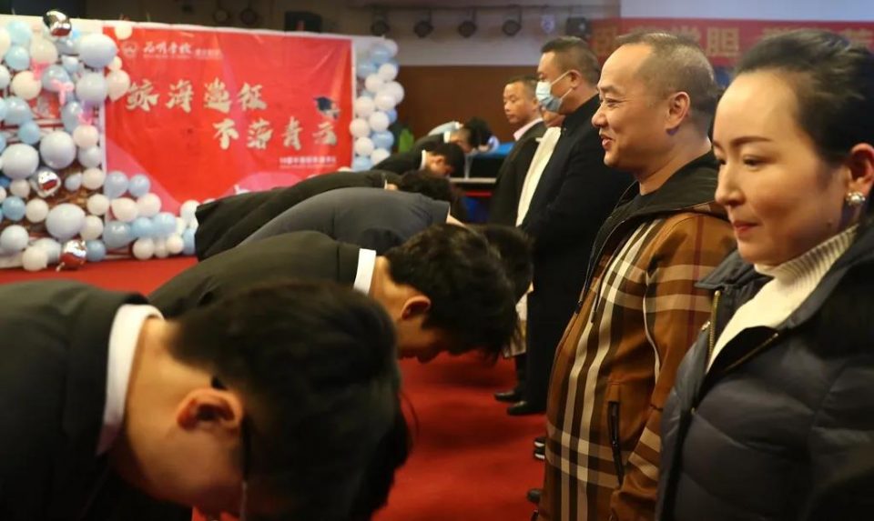 18级毕业生十八岁成人礼仪式开始了:毕业生们给父母深深的三鞠躬,一个深情的拥抱,一封感恩书信,一份精心的礼物,表达了他们感恩父母养育之恩,牢记人生于天地之间责任担当之使命。