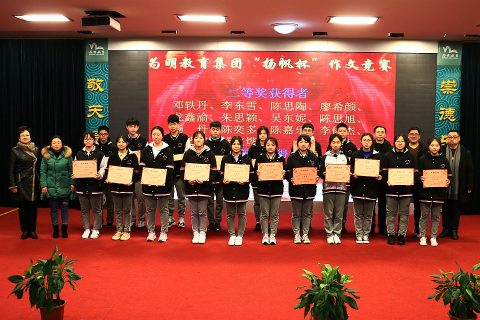 紧接着,大会表彰了在学习、品德、体育、艺术、科技、学习雷锋及生活等各方面表现优秀的78名学生。在2018-2019学年为明“扬帆杯”作文竞赛中,我校初三年级学生善于写作、精心构思,创作了一篇篇优美文章,杨倩、邓轶丹等20名学生喜获一、二等奖。王骏同学在该比赛中荣获特等奖,王小鹏校长特地为他颁发了精致的奖杯。