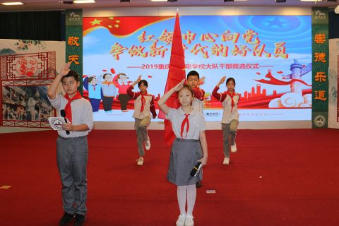在同学们带来的节目《在灿烂的阳光下》和《时代好少年》中,竞选仪式拉开序幕!活动开始,全体师生起立,迎队旗,唱《中国少年先锋队队歌》。