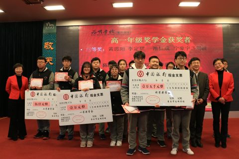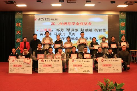 下午1点30分,师生齐聚一堂。苏俊宁同学深情演唱了《浪子回头》后,主持人张博、李馨月请出国际部主任余玲宣布获得奖学金的同学名单。