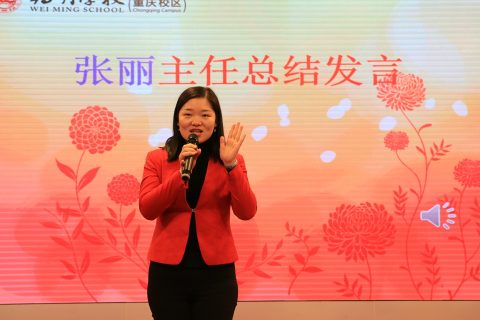 优秀学生家长代表刘又嘉同学的母亲常淑香女士作了激情洋溢的分享。她感谢学校对孩子的关心,认为学校管理严格、重视孩子的学习和身心健康,尤其重视食品安全和品质,让家长很放心。她讲述了孩子到了为明学校后,在班主任胡波老师的开导、关心和鼓励下发生的巨大变化和取得的可喜进步。她说,什么样的学校造就什么样的人才,为明这所充满阳光与爱的学校,一定可以让孩子们在未来闪光。