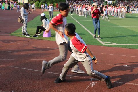最后的4*100米接力赛和20*30的迎面接力赛把运动会推向了高潮。同学们、老师们一阵阵的加油声、喝彩声、欢呼声一浪高过一浪。运动员努力拼搏,不断进取,超越自我的姿态,舍弃个人为集体争光的团队精神,不断地激励着自己,也鼓舞着别人。一浪高过一浪的助威呐喊声更是一堂为我们每一位师生上的一次极好的教育课,在比赛观赛中我们获得了团队合作的精神,获得了老师和同学的关怀,获得了很多很多......