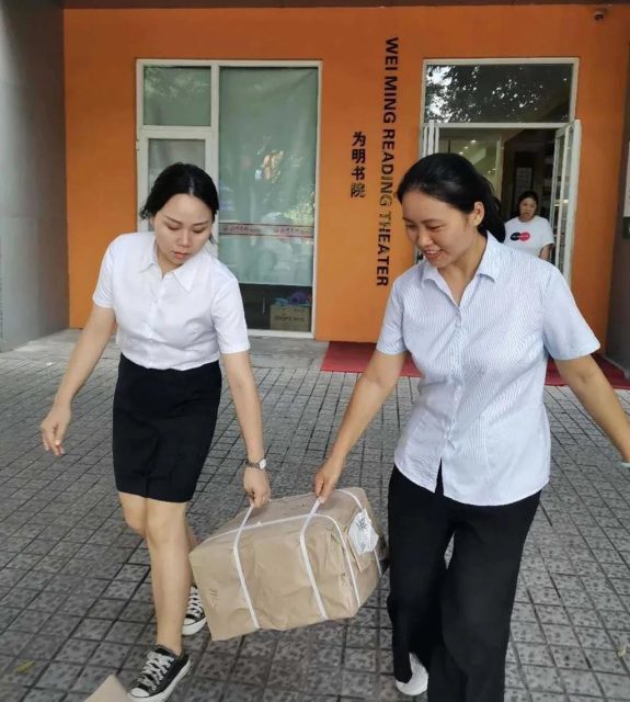 孩子们在签名墙上写下自己的姓名,再跟老师合个影,这是为明送给学子们的见面礼,快门按下的那瞬间,这笑容如阳光般灿烂。