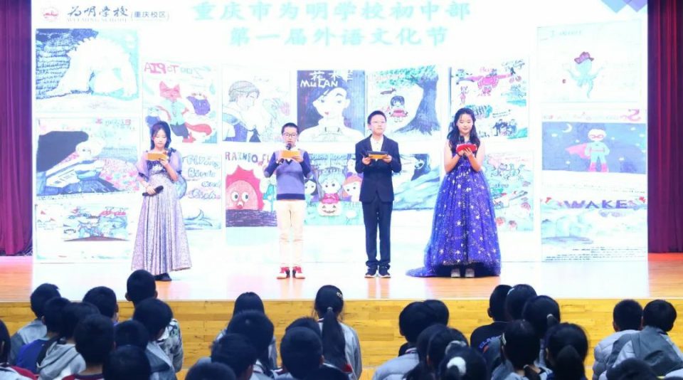 为深入学习贯彻党的二十大会议精神,弘扬伟大建党精神,坚持为党育人、为国育才,落实立德树人根本任务,做好《义务教育课程方案》与《义务教育英语课程标准》的实践研究,11月23日晚,重庆市为明学校初中部举办了第一届英语文化节,将党的二十大精神有机融入到初中英语教育教学中,打造为明英语课程特色,践行课程思想,提升师生核心素养,用英语讲好中国故事,传播好中国声音。同学们在英语老师的指导下踊跃参与,学在其中,乐在其中,热闹非凡。
