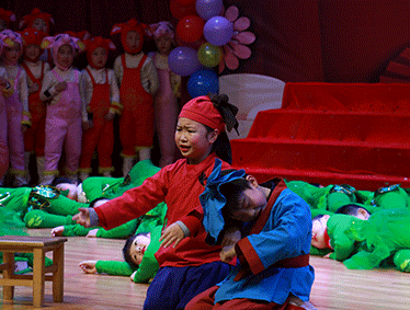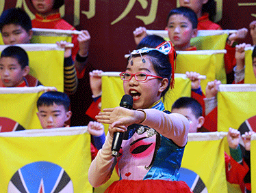 中国戏曲源远流长,有着鲜明的民族风格,它是我们文化史上光辉灿烂的一笔。每个地方戏曲都具有自己独特的地域文化风情,如京剧的雍荣华美,昆曲的典雅精致,梆子戏的高亢悲凉,越剧的轻柔婉转,可以说一方水土造就一方戏曲。5.2班带来的戏曲对唱《对花》、PS5.5班和PS5.8班带来的《京剧串烧》,以及5.1班演唱的《说唱脸谱》、PS5.2班演唱的《小花旦》,PS4.8演唱的《女驸马》,让我们大饱耳福,我们领略到了戏曲之美、戏曲之韵; PS5.4和PS5.6班带来的舞蹈《霍元甲》,武术兴趣班带来的武术表演《中华武术》,让我们领略到了中华功夫的博大精深和魅力,赢得了场下观众热烈的掌声; 4.1班和4.2班带来的舞蹈《梨娃闹春》、PS4.1带来的舞蹈《京韵》,ps4.9班表演的舞蹈《戏娃》、PS4.4班和ps4.3班的《智取威虎山》,PS4.7班的《花木兰》,BKL4.1班和ps4.2班表演的《从小爱唱花鼓戏》,戏曲表演惟妙惟俏,一颦一笑生动活泼;音乐组老师表演的舞蹈《阿里郎》,PS5.9班表演的《看京戏》,PS4.5班、PS4.6班、PS5.3班和PS5.7班表演的舞蹈《华阴老腔一声喊》,节奏明快,舞姿动人,为这寒冬增添了融融的暖意。