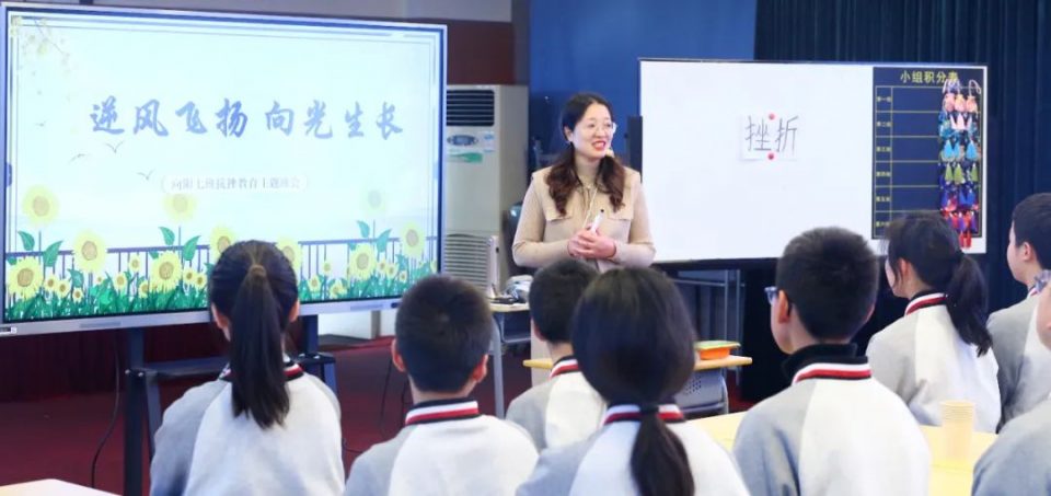 她还加入闯关游戏,激发学生战胜挫折的潜力,并以小组讨论三个锦囊计策,掌握面对挫折的对策,学会在实践中运用,培养在逆境中坚持和迎难而上的勇气。