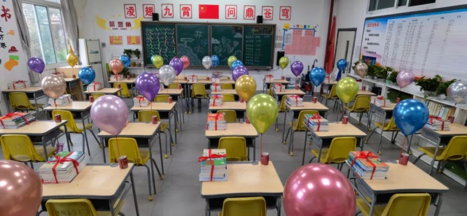 这是一所追逐梦想的学校。校园里真喜庆啊,红色充气拱门、中高考喜报、签名墙、照相框,应有尽有!