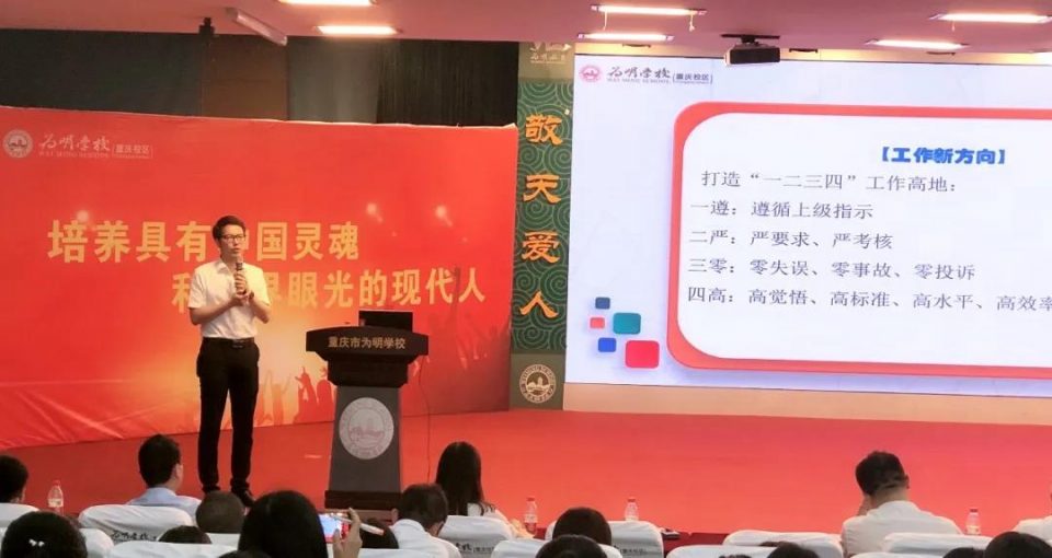 会议最后,熊军副校长用幽默诙谐的语言对此次大会做了全面的总结,并寄予全体教师:希望全体教师能够静下心来教书,潜下心来育人。搭乘重庆为明执行力提升、教管提档升级的东风,为实现新学年新学期的奋斗目标而努力。