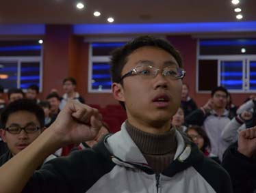 大会首先表彰上期学习突出的先进个人,学校领导为他们颁奖。他们将获得8折、5折及全免学费的奖学金。学生代表初三(2)班黄逸文同学发表获奖感言,介绍了自己的学习经验。学生代表初三(1)班田郦羽同学发言表示: “九年磨剑、六月试锋”置身于升学竞争的洪流,我们实际上已身不由己,重重困难在逼迫着我们,我们别无选择,只能破釜沉舟,背水一战。头悬梁,锥刺骨又有何不可?我们只有直面现实,挑战现实,挑战人生,才能在这场激烈的斗争中获得最后的胜利。