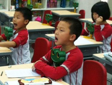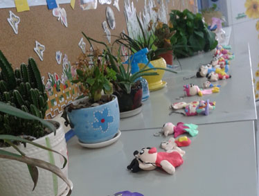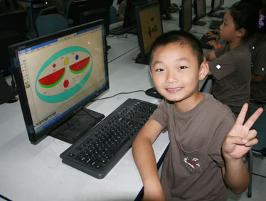 走进文学兴趣班,孩子们创作的文字在老师精心审阅修改后变成了一个个精致作品张贴在展板上。横竖撇捺间,一个个生动传神的汉字立在格子中央,整齐排列地像精神抖擞的士兵,一个个赏心悦目的红色圆勾像一张张笑盈盈的脸,鲜红的“优”、“你真棒”、“你进步啦”、还有种种特色的评价语言如“笑脸”、“大拇指 ”、“花朵”等印在孩子们作品的下方,饱含着份份真情,颗颗真心,更饱含着老师对孩子孜孜不倦的鼓励;数学兴趣班里,孩子们专注地练习着,笔尖流淌飞快,时而轻轻蹙眉思考,时而喃喃有词,恍然大悟间,轻轻一笑的无限畅快;经典诵读教室里,孩子们与老师一起正感受着中国语言文字的魅力,或高声朗诵,或沉思低吟,生动再现了历史伟人那字里行间的深情一片,无不为壮丽的河山倾倒,为祖国博大精深文化所折服;而泥塑班的孩子们,用手中五彩缤纷的陶泥巧妙地幻化出生动形象的作品,有色彩明丽的沙发、有鲜活的人物形象、有枝叶分明的小树、有样式独特的房子。一路走来,各个兴趣班教室飘荡着孩子们放松、喜悦的笑声……
