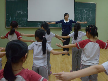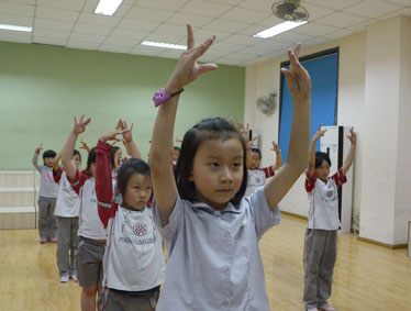 来到活动中心,这里更是精彩纷呈。小主持人清脆的嗓音从教室里飘出来,吸引了前来验收的老师们,一举手一投足间,俨然一个专业的小主持人。听说他们常常主持班级的节目,小型的朗读。我想,不久的将来,他们一定会走上更多的舞台,主持更多更大型的活动。教室隔壁的电脑制作班、乐器班、油画班,有不少孩子敲击键盘鼠标的轻快声,有打击乐传出的稚嫩却很肯定的鼓点声,有油画班孩子挥舞画笔小声讨论色彩搭配的声音。 当评审组老师走进进舞蹈教室时,欢快的音乐吸引了老师驻足观赏。孩子们随着优美的音乐翩翩起舞,时而柔美;时而欢快;时而舒缓;时而热烈,让人不自禁沉醉其中。细细看来,才发现舞蹈的孩子有的那么眼熟,是啊,他们曾在我校诸多大型活动的精品舞蹈之中出现过。就是这兴趣班的专业化训练让有天赋的孩子从普通中脱颖而出,在我校大型活动中有着出色的表现。真是“台上一分钟,台下十年功”啊!孩子们精彩的展示看得评委老师都舍不得离开了。“小荷”才露尖尖角,他们在附中这一片沃土上,如挺拔的小树,正迎着春天快乐地学习,健康地成长!