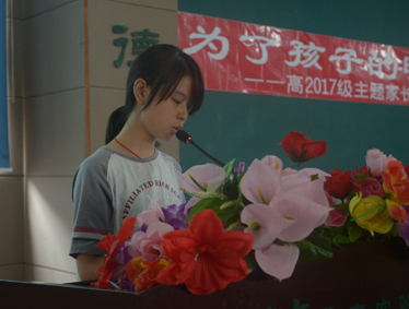 11点,全体家长齐聚学术报告厅。首先,由高一1班的周若冰、高一2班的邹雅倩、高一3班的龙鑫、高一4班的王琛等四位同学分别代表各自班级,向家长们汇报了这一个月在学校的点点滴滴。接下来,是高一年级主任王敬立老师向家长们介绍了孩子们的学习和生活情况。他从军训说起,孩子们坚强的意志和顽强的拼搏精神让人动容,指出了孩子们在学习方法和行为习惯方面的不足,详尽介绍了学校、学部和年级组在管理方面的措施,最后还向家长们提出了多和孩子沟通、多关心孩子思想成长等建议。高中德育处苏小波主任对艺术类考生家长做了沟通交流。他从今年高考艺体生录取情况入手,简介了刚刚出台的高考改革,具体讲解了我校高中的多元培养目标,分析了当前社会的人才需求,得出了“适合的才是最好的”的结论。并现场解答了家长提出的问题。参加这次家长会的还有校长助理高中部陈文明主任、高中部教务余玲主任。会议由高一2班的杨士青同学主持。