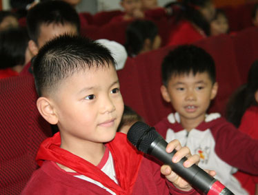 “什么是气象?”一开课,杨老师的问题激发了同学们的思考,他们争先恐后地用最通俗的话语进行了回答。有的说,气象就是天气情况,有的说气象就是太阳阴晴,……看着孩子们一双双渴求的眼睛,杨老师利用甲骨文、图片等方式生动形象地向同学们讲解了我们生活中常见的风、雨、雪、霜、冰雹、雷电等气象形成的原因和形态,第一次让孩子们感受到气象知识的无穷奥妙。杨老师介绍说,风可以分成和风,大风,狂风,龙卷风等,分别有级数;看到雨滴,同学们知道了毛毛雨细如发丝,花针,牛毛,小雨如线条,丝线,大雨如瓢泼,如倾注的不同状态,就连最细小的雨滴,也有毛毛雨滴、小雨滴、大雨滴的大小区分;看到雪,孩子们对这种水汽凝结而成的冰晶体非常兴奋,不停地喊“那是雪花,那是雪”,确实,它那六角形的身体非常的晶莹漂亮,洁白可爱。接下来,孩子们在第一次了解了冰雹这种“鲜少听闻”的极端天气中,更是对雷电的形成,雷电发生时该怎么进行安全保护充满了好奇。整个会场能看到孩子们安静聆听的认真劲,不时还有几个孩子发出啧啧的惊奇声。