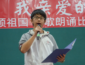 诗歌,如清晨的露水,浸润心田;也如纯洁的清泉,洗涤思想;更如奔腾的江海,涤荡灵魂。10月29日晚,我校高中部高一年级举行了以“祖国啊,我亲爱的祖国——金秋颂祖国”为主题的诗歌朗诵比赛。本次活动由高中部语文教研组举办,高一语文组承办,高中部陈文明主任、苏小波主任莅临指导并观看了比赛,高中语文组教师担任评委,高一·四班的毛宁南同学和高一·二班杨士青同学担任主持。