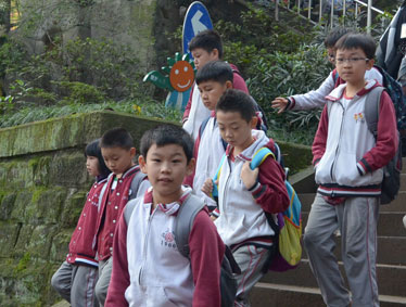 看,这一群身着整洁校服的孩子来了。