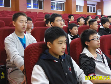 在彭主任开展讲座的同时,团支书汪秋书记也于同一时间在学术报告厅开展了“做一名健康阳光男孩——与初中男生谈青春期成长”的讲座。