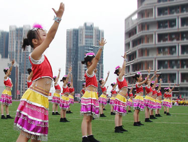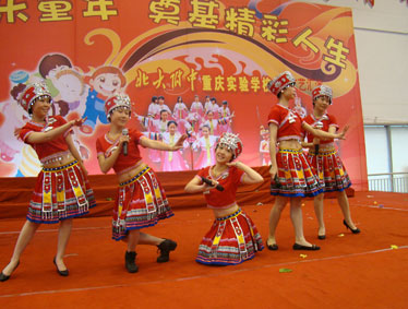 音乐赋予人灵动的气质。学部“以活动促发展”的理念,使得音乐组的工作越来越延伸到了课外。她们个个会唱会跳,承担起课堂之外的各种活动锻炼,以学部传统活动为载体,以学科组各种比赛历练为核心,教给孩子艺术专业技能,促进孩子的成长。无论是一年一度的体育运动会、六一活动、为明好声音、钢琴比赛,还是每学期一次的元旦汇演,大队委选举、演讲比赛、讲故事比赛,她们辗转于教室、活动场,亲手教会孩子每一个动作排练、纠正孩子的每一个发音、表情,从主创编排到配合班主任排练,她们,用歌声传递气质,用坚韧传递信念,以不是“须眉”胜似“须眉”的勇敢坚毅,生动谱写了巾帼女将的靓丽风采!看,学部一系列活动中,她们那些傲人的成绩:从从08年“模拟北京奥运会”的精品舞《茉莉花》到《剪纸姑娘》;从气壮山河的《大中国》再到《伦敦你好》开幕表演;2014年模拟巴西运动会上,滚动蓝白红巨型足球的《Amani》开场舞;教师发展活动中,策划编排教师人人参与《赛马》、《跑马溜溜的山上》《荷塘月色》等节目表演,音乐组,用爱心,责任和智慧,推动了教学相长的艺术活动蓬勃发展,推动了我校素质教育培养的全面开花,她们的奉献与贡献,随着学部发展壮大的光辉历程被铭记,被载入学校史册。