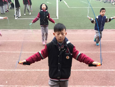 操场上主要分布了体育类兴趣小组,足球、篮球、羽毛球、跳绳、武术等兴趣小组正投入火热的比拼和训练中。乒乓球台被孩子们围了个水泄不通,加油声、拍手喝彩声不绝于耳,许老师口哨一吹,孩子应声握紧球拍立刻投入了战斗。“乒乒乓乓”只听得乒乓球在台子上有节奏地脆响,一颗颗小球在空中起伏飞跃。篮筐再高高不过孩子们跃动的心,看,起步助跑、转身跃起腾飞、抬手扣篮,一连串扣篮动作一气呵成,王老师一面递过篮球来,一面鼓励、提醒:“转身”“速度”,孩子们心领神会相互间一招一式都配合默契。在绿荫场上,追逐的小足球员们激情四射脚下生风,据说孩子们因为十分喜欢兴趣班,他们的平时训练扎实刻苦。所以从传球到射门,从体能训练到射球技巧,他们都显得专业投入,负责拍照的老师赶紧抓拍,将孩子帅气的身影一一留下。