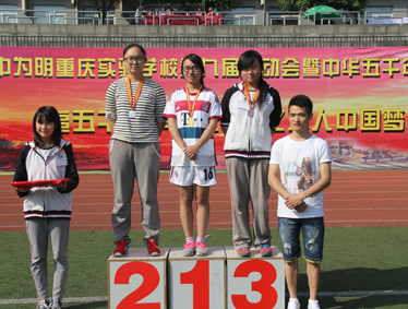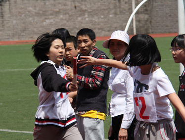 运动会在初一初二老师的迎面接力和拔河赛中落下帷幕。运动会最后一个环节——颁奖典礼。德育主任彭永、教务主任乐宏伟、各年级组长分别为班级颁发了团体总分第二名、第三名、精神文明和特殊贡献奖;张晓琴副校长为班级颁发了团体总分第一名和最佳组织奖。获奖班级受到的隆重表彰,给全体师生以极大鼓舞。