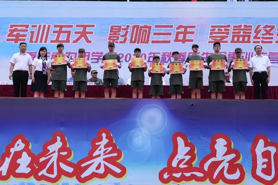 校长,2020秋季初一、高一新生军训队伍集合完毕,请您指示!”