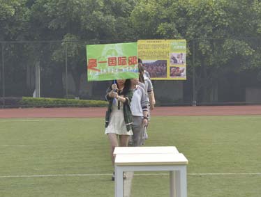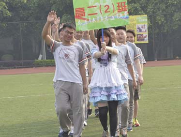 开幕式在高二二班动感的舞蹈下拉开了帷幕。和着运动员进行曲的节奏各代表队在着盛装的服装社和动漫社成员的引领下有序入场。足球社的球技展示、教师队的闪亮登场、高二一班响亮的口号、高一四班的舞蹈风姿、国际班的杯子舞、志愿者队的志愿口号都成了赛场上一道亮丽的风景线,展现出当代高中生阳光、健康、积极、向上的精神面貌。