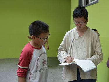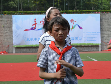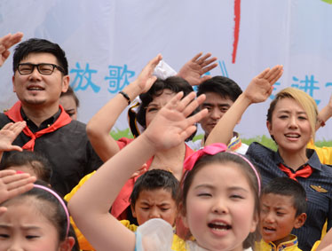 “大手牵着小手,你和我的爱汇聚,将爱传递向远方;小手牵着大手,从此以后,无论风雨,无论悲喜,我们都靠在一起。”大灾无情,人间有爱。此次公益演出邀请的十几名孤儿和留守儿童,被主持人一一请上台来。他们中有六七岁的孩子,有十一二岁的哥哥姐姐,面对台下二千多双眼睛的时候,他们显得是那么的局促,眼神纯洁宁静,分明就是我们身边的一名亲人。青年画家黄炳馀先生,就是长期致力于“手牵手” 公益事业感人至深的代表。他用手中的画笔,资助了639名川藏孤儿和留守儿童。为了能邀请到这群孩子和城市里的孩子们共度一个属于自己的节日,黄炳馀先生带着吉林卫视负责拍摄的几位朋友,15号从成都出发,日夜兼程,淌过山间泥泞的道路,踏过满山的荆棘,终于带着孩子们走出大山,来到北大附中,与孩子们相聚在此刻。谈到与孩子们这些年之间的点滴,黄炳馀先生如数家珍,回忆起前两天在大山中与一位小女孩的对话,他说:“人生的众多磨难其实是一种财富,即使看似你现在比别人拥有的少,其实却是你以后实现自己梦想的累积。人的梦想不一样,但每一个孩子,都应该有自己的未来。我只不过是众多帮助他们实现梦想中的最平凡的一位。孩子,是我们的未来。”