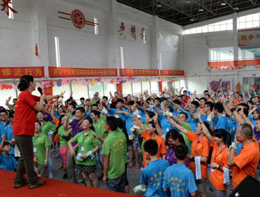 早上九点半,活动在充满动感的音乐中拉开序幕,义工们用真诚和热情感染了参加活动的所有人员,大家舞动全场,气氛异常热烈。活动以团队的方式展开。在分组的时候,义工们考虑到了义工、学生、老师、家长各类人员的搭配,这样就特别能增进学生、家长、老师之间的更深层次的沟通、了解、理解和信任。