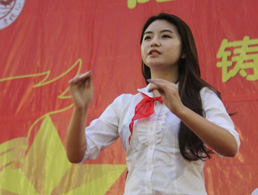 活动的第一项新队员入队仪式在激昂的出旗曲中开始了,小学部德育处王华品主任宣布读了新队员名单,同学们都静心聆听,激动万分。当新队员们看着胸前鲜艳的红领巾时,他们的那一张张小脸笑得那么绚烂。在67中队大队长夏艺欣的领誓下,新队员进行了庄严的宣誓:“我是中国少年先锋队队员。我在队旗下宣誓:我决心遵照中国共产党的教导,好好学习,好好工作,好好劳动,准备着:为共产主义事业,贡献出一切力量!” 紧接着活动进行第二项:表彰优秀辅导员和优秀中队。正因为有了这样一群可亲可敬的老师才有了我们的优秀中队!在整个活动过程中还穿插了精彩的文艺表演和威武的武术节目,这些节目让孩子们看得热血沸腾,个个都想争当少先队的好队员!活动的最后一项是学校领导为改选后的大队干部佩戴臂章,鲜红的臂章是他们的责任,他们一个个稚气未脱的脸庞上过着果敢和坚毅,相信他们一定能克服一切困难为大家服好务的!随着53名大队干部带来的歌曲《爱因为在心中》把整个活动推向了高潮。