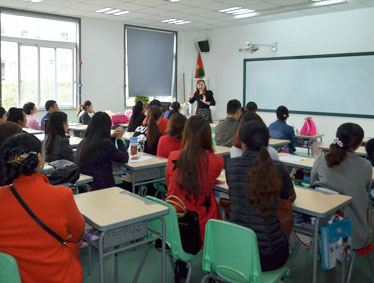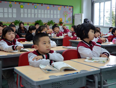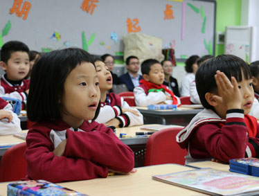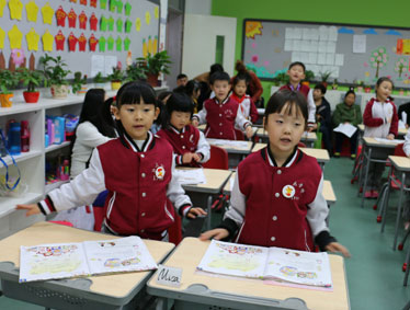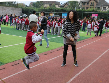 家长们走进课堂,近距离了解孩子的学习情况。低年级的数学寓教于乐,二年级《认识时间》的学习兴趣盎然。老师带着钟表,让孩子拨一拨钟表,感受钟表的钟面设计,摆一摆时间,感受时针、分针和秒针的不同,说一说自己对钟表的认识。从孩子们在课堂上有序的秩序、精彩的发言、默契地小组合作以及讨论、交流等活动中,家长们看到了孩子的成长。语文课堂同样精彩:一年级孩子刚刚结束拼音教学,生字的认识充满了好奇,一节课下来,认识了好多生字,高兴极了,纷纷跑到家长面前,好展示自己的进步,当起了小老师;三年级老师执教的《赵州桥》,学生学得主动,学得扎实,学得轻松。高段的孩子们稳重得多,课堂深入难度大的文章时,孩子们细心聆听,专心思考和讨论让人肃然起敬。综合课堂上孩子们学习了:美术课堂上的人物漫画,体育课堂上的短跳绳,音乐课堂上的尽情歌唱。孩子们在这些课堂上刻苦锻炼,用心观察和描绘,给在座的家长们留下了深刻的印象。特别是培生班级的外教课,整个课堂高潮迭起。外教老师利用他口语的优势引导孩子敢于张口说,说清楚。即使是最简单的问候,也尽量做到每个同学都练习说几遍。不仅自己和老师练习说,还要和身边的小伙伴说,和身后的家长说。游戏也是贯穿了整个课堂,欢乐充满了整间教室。