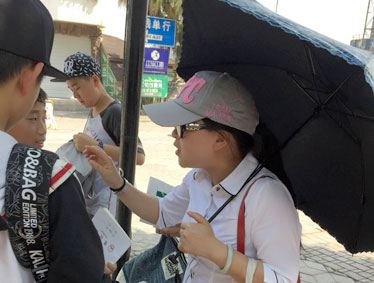 一开始,有的女同学害羞,嗫嚅着不敢开口。陈颖老师鼓励他们说:“这是做让社会文明和进步的好事,又是难得的锻炼自己口才的好机会。去吧!” 于是,孩子们便鼓起勇气走了上去。“叔叔,你好!我是北大附中为明重庆实验学校的学生,你有时间接受我的采访吗? “阿姨,目前国人随着生活水平的提高,旅游业兴旺起来。可是也存在许多不文明的行为,您认为哪些行为是不文明的呢?” “奶奶,我们今天来洋人街进行文明出游的社会实践活动,请问您对文明出游有哪些建议? ” ……那充满活力的身影、阳光的脸庞、清脆的声音,成为洋人街上的一道亮丽的风景。