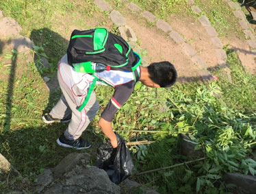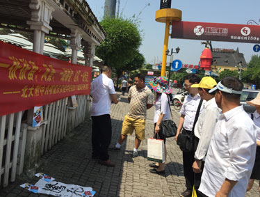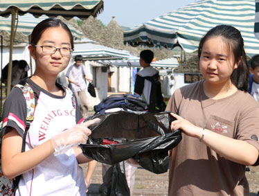 阳光明媚,和风徐徐,北大附中为明学子身穿校服,在老师的带领下走上洋人街。他们打着宣传的标语:“善待地球就是善待自己” “将环保变为习惯,用习惯浇溉未来。” “所有的付出都是为了遇见更美的你——洋人街快乐!” “草儿绿花儿香,环境优美人健康。” “轻拾夏风尘土,让美景不忧伤!”