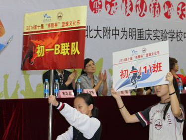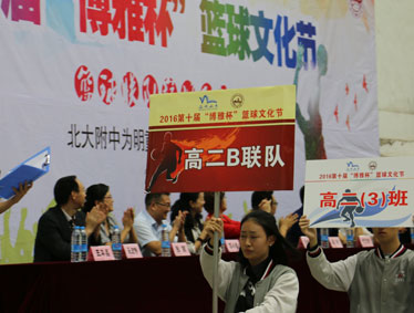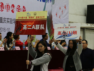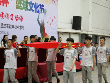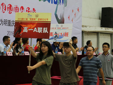 2016年10月23日晚7:00,我校中学部第十届“博雅怀”篮球文化节在学校体育馆隆重开幕,初高中非毕业班近千名师生参加了开幕式。张晓琴副校长、教科研督导中心向琦主任、总务处于万青主任、财务处黄万春主任、国际部余玲主任、高三级部苏小波主任、高一高二级部张丽主任、初三级部乐宏伟主任、学校生活部王静主管、学校艺体部王伦主管、中学德育主管兼学校团委书记杨昌武老师等领导出席了开幕式,并为师生们加油喝彩。开幕式由高中王明凤和陈浩文两位同学主持。