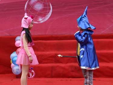 低段的英语技能比赛内容为情景剧的展示。一年级英语童话剧《Fancy dress party》以Peppa在家庭中的一个聚会为主线,讲述和小动物之间发生的趣事,让她和小伙伴们过了一个快乐的节日。《Snow White》讲述七个小矮人和白雪公主、王子之间发生的故事。一年级的孩子在短短两个月的时间里,能用流利的英语进行舞台表演,获得大家一致好评。二年级的节目融合了音乐、舞蹈,各种音效,把孩子们要表现的故事进行加工,改编,配以极妙的舞台服装,把整个故事表现出来:PS 2.5、2.6 《匹诺曹》;PS2.2 2.4《小兔子乖乖》,进行就大胆的改编,大灰狼一家都来敲门;2.1 《葫芦娃的故事》,通过英语剧的形式,把葫芦娃智斗蛇精的故事表现的惟妙惟肖。三年级的英语话剧,通过让孩子们扮成不同的人物来体验英语、感受英语,并且能用英语把人物特点表现的淋漓尽致。《丑小鸭》一剧告诉我们:只要付出努力,丑小鸭也可以变成白天鹅。《how to make friends》提示孩子们:礼貌待人的重要性:只有礼貌待人才能得到别人的尊重,才能交到朋友!