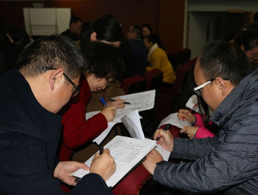 会上,陈玉明校长作了“再好的方法也要用心用情用智和坚持”为题的讲话。陈校长从“我现在心中的“6+1”?我的课哪些做到了哪些没做到,为什么?我下一步准备在哪些方面寻求突破,怎么突破?”三个话题引入,就“导、思、议、展、评、捡、练”的“目的任务、完成主体、标准要求、时间分配、注意事项”进行当场问卷,与会教师即席答题,答卷统计公布后教师们笑逐颜开,校长收到满意的答卷后告诫老师们:本组目前存在的最大问题是什么,准备怎么解决?本学科急需突破的难点是什么,准备用什么办法实现突破?还有哪些细节需要注意,还有哪些需要进一步合作?这需要“用心用情用智,人人坚持,堂堂坚持,天天坚持,才能有效。”最后,陈校长语重心长地说:“一个人遇到好老师是人生的幸运,一个学校拥有好老师是学校的光荣(财富),一个民族源源不断涌现出一批又一批好老师则是民族的希望。祝愿大家经过自己的努力,个个都成为这样的好老师!”