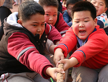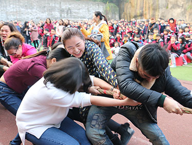 为了丰富学生的课余生活,培养同学们的团队精神和集体荣誉感,同时促进各班级之间的交流, 2月15日下午北大附中为明重庆实验学校小学部举行了一场振奋人心的拔河比赛。