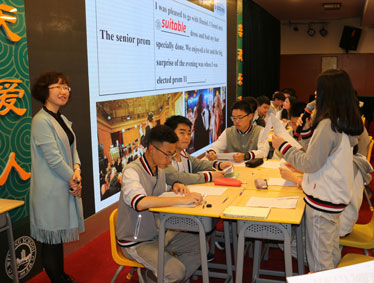 颁奖大会开始前,英语教师王丹妮和高二6班的全体同学为大家展示了一堂“6+1”高效课堂。“导”得生动有趣,直击教学目标;“讲评”精准,紧扣教学难点;“学”得认真,思得深入;合作探究,“议”得充分;争先“展示”,激情飞扬;现场检测,精准反馈。大家仿佛重新回到了大赛的激烈赛场。