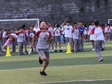 运动中,每个班级组织有序,争做文明观众,田径比赛中更展示出我校学生良好的素质,每个班级在在指定的位置写报道,为本班参赛同学呐喊助威,喝完水后的将纸杯、写完报道后的废纸等等,都自觉扔进垃圾桶,在班主任的组织下每个班级有序,守纪、文明。各班级的精细管理恰恰说明这样一个道理:团结、严谨这就是为明人的作风,短时,高效,这就是我们为明人的品质。 “人人参与,班班精彩,个个争先”就是各班奋斗的目标。