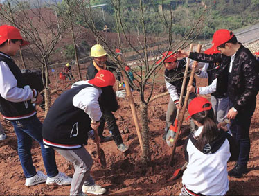 为增强中学生保护大自然的意识和热情,响应两江新区团工委的号召,3月26日上午9点,由初一初二级部优秀学生会干部、优秀团员、优秀学生代表组成的先进集体,在初中团总支书记汪秋老师的带领下,参加了两江新区团工委、两江新区市政局主办的【青年之声】青春助力海绵城市 白云山公园植树活动。