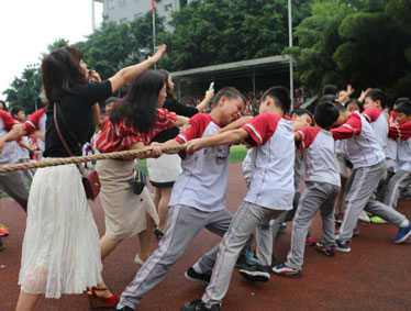 参赛人员本着"友谊第一,比赛第二"的原则,整场比赛进行有序。当比赛的哨声响起,只见参赛的队员们紧握长绳,卯足了劲拼命往后拉!老师们一改课堂严谨形象,冲锋在前,为班级助阵助威!一部分新家长自发组成啦啦队为比赛队员呐喊加油,哨子声、呐喊声此起彼伏,现场激烈的比赛将整个活动推到了高潮!比赛过程中,各部门参赛队员努力拼搏,无论是场上还是场下,气氛都异常激烈。
