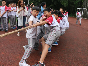 为丰富小学部全体教职员工的精神文化生活,促进师生之间的交流,发扬团队精神,增强凝聚力,学部于2017年9月20日举行了拔河比赛。参赛队伍以各年级为组别,每组分各班级参赛,比赛实行淘汰制晋级方式,抽签分组决定比赛顺序。当比赛的哨声一响起,队员们口中一齐高呼着“一二,一二”,双手紧握长绳,憋足了劲拼命往后拉,班主任也在队伍旁边助阵加油,恨不得抓起绳子跟学生一齐努力!班级内剩余的同学们自发组成啦啦队为本班人员加油。号子声、呐喊声,此起彼伏,飘荡在整个操场上空。