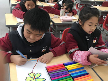 教学楼的分布有剪纸班、剑桥英语、电影欣赏班、电脑绘画班、阅读班等。教室内,孩子们敲击键盘鼠标同样绘画出了美丽的图画。电脑绘画软件充分展示了孩子们天才的想象力。孩子们一学期来的作品都有专门的电脑文件夹保存着,一一点击开来,我们惊讶地发现孩子的创造力和想象力是那么神奇。书法班、阅览室、汉字文化班、数学思维班、英语趣配音、英语口语、英语vip等兴趣班,也是秩序井然,成果显著。书法班的孩子认真练习书法,学习和分析建构汉字结构;阅览室安静极了,每个孩子都沉浸在书的海洋里;数学思维训练一点都不枯燥,在有趣的数字现象里,孩子们学到了课本以外的知识;英语的口语表演生动有趣,老师和孩子互动,教室里传出了一阵阵欢乐的笑声。