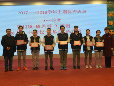 大会由初三学生阳安淇、陈司南主持。大会在庄严的国歌声中拉开帷幕。首先表彰的是2017-2018学年上期的各种进步和优秀学生。老师和领导为获奖同学颁奖,殷切希望,并合影留念。同学们也为同伴的荣耀而热烈鼓掌。