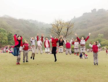 孩子们有说有笑在大自然的怀抱中,他们像一群放飞的小鸟自由地翱翔,在草地上尽情地玩耍嬉戏。瞧,可爱的低段的孩子们,他们和老师一起玩老鹰捉小鸡、捉迷藏、摔跤、打滚,或者什么也不做就傻傻地躺在草地上,呼吸着花草树木的芳香,闻着泥土的气息,好不惬意。