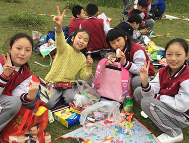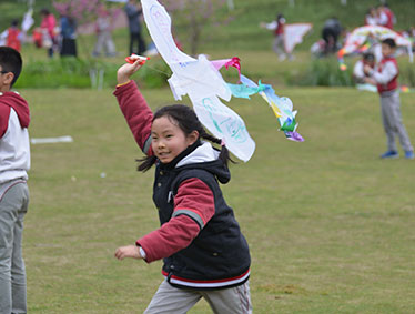 “草长莺飞二月天,拂堤杨柳醉春烟。儿童散学归来早,忙趁东风放纸鸢。”放风筝是即将到来的传统节日——清明节的习俗之一,也是本次活动的一大亮点。这些风筝都是孩子们在美术课上,自己亲手精心设计的。有的孩子在风筝上面写着自己的名字,有的涂上喜欢的图案,有的是独具匠心的标志,有的写上一首古诗……他们用自己的方式表达着对先人的祝福。蝴蝶、金鱼、燕子、老鹰等各式各样、五颜六色。看,高年级的孩子在举行风筝比赛。他们迫不及待地放飞手中的风筝,双手紧握风筝线,一脸认真,生怕一个不小心,风筝落在他人之下,他们在草坪上飞快地奔跑着。中段的孩子们也不甘示弱,只见天空中凌空飞起颜色各异的风筝,像彩蝶在空中翩翩起舞,争奇斗艳。那些飘飘的风筝扶摇直上,宛如轻盈的彩蝶,活泼的飞鸟,时而飘摇回旋,时而直上蓝天,别有一番情趣。低段的孩子在老师的耐心帮助下,也成功放飞了手中的风筝。缤纷多彩的风筝吸引了孩子们好奇的目光,灿烂写在张张稚嫩的脸上,笑容美如一朵朵美丽的向日葵。一批又一批的风筝飞上天,孩子们时而屏息凝望,时而欢呼鼓掌,时而唏嘘不已。孩子们放飞着希望,放飞着对未来的美好憧憬,也传递着祝福……跑累了,孩子们就在草地上围坐着,拿出零食和大家分享着。花儿安静地开着,草静静地绿着,风儿轻轻地吹着……童年如此美好!