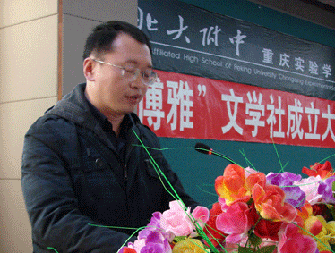 2011年2月24日下午5时许,学校学术报告厅里,古典诗词歌曲响起,学校领导、中学部全体语文教师、班主任和年级组长、文学社全体成员和文学爱好者陆续来到了会场。