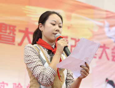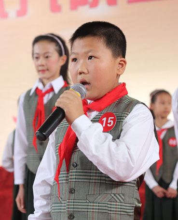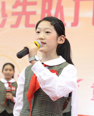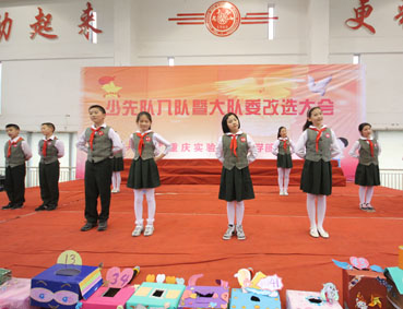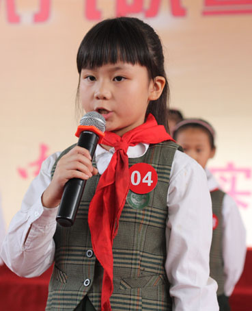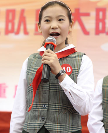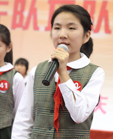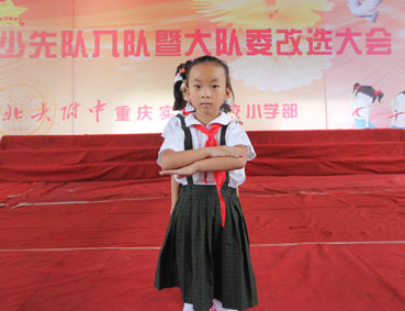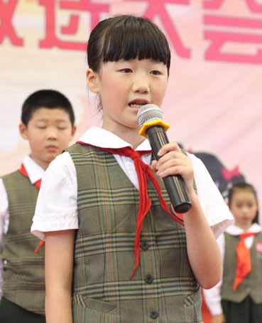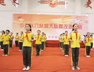 新队员入队仪式结束后是更为精彩的大队委竞选活动。经过自己推荐、中队竞选等方式层层选拔上来的大队委员候选人进行了竞职演讲和才艺表演,准备充分的演讲充分地展示了自己竞选大队委员的雄心壮志及综合素质,努力把自己最好的一面展示在全校同学的面前。
