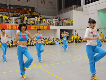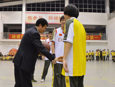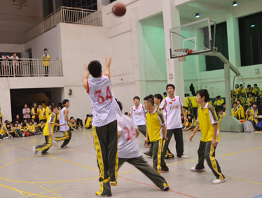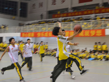 之后,体育馆再一次给我们呈现了一场激情四射的篮球表演赛——高一学生明星队和高二学生明星队对阵,将本次闭幕式推向高潮。