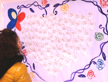 活动最后,全场人员用自己的真情给倾情为大家奉献的义工们系上了代表此次活动精神的蓝色丝带,大家深情相拥……