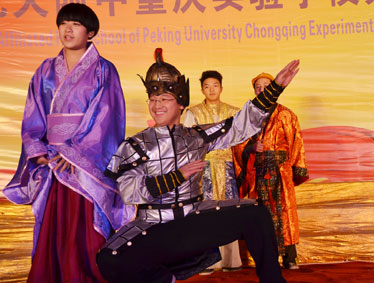 接下来的节目异彩纷呈。从歌曲串烧到民族舞蹈,从情景喜剧到诗歌朗诵,从萨克斯、钢琴合奏到钢琴四手联弹,从另类的B-Box口秀到流行的街舞,从富有异域风情的二人拉丁舞表演到颇具力量的高中歌曲大合唱,从展示生活老师风采的节目三句半到师生同台献艺的唐朝服装魅力秀,一次又一次地引发观众的阵阵掌声。其中高中美术社极具创意和美感的服装秀《故宫的记忆》、笑点迭出的话剧表演《刺秦》、郭永月老师刚健峭拔的京剧演唱《打渔杀家》,更是将整场晚会推向了高潮!新的一年,让我们心潮澎湃,朝气勃发!